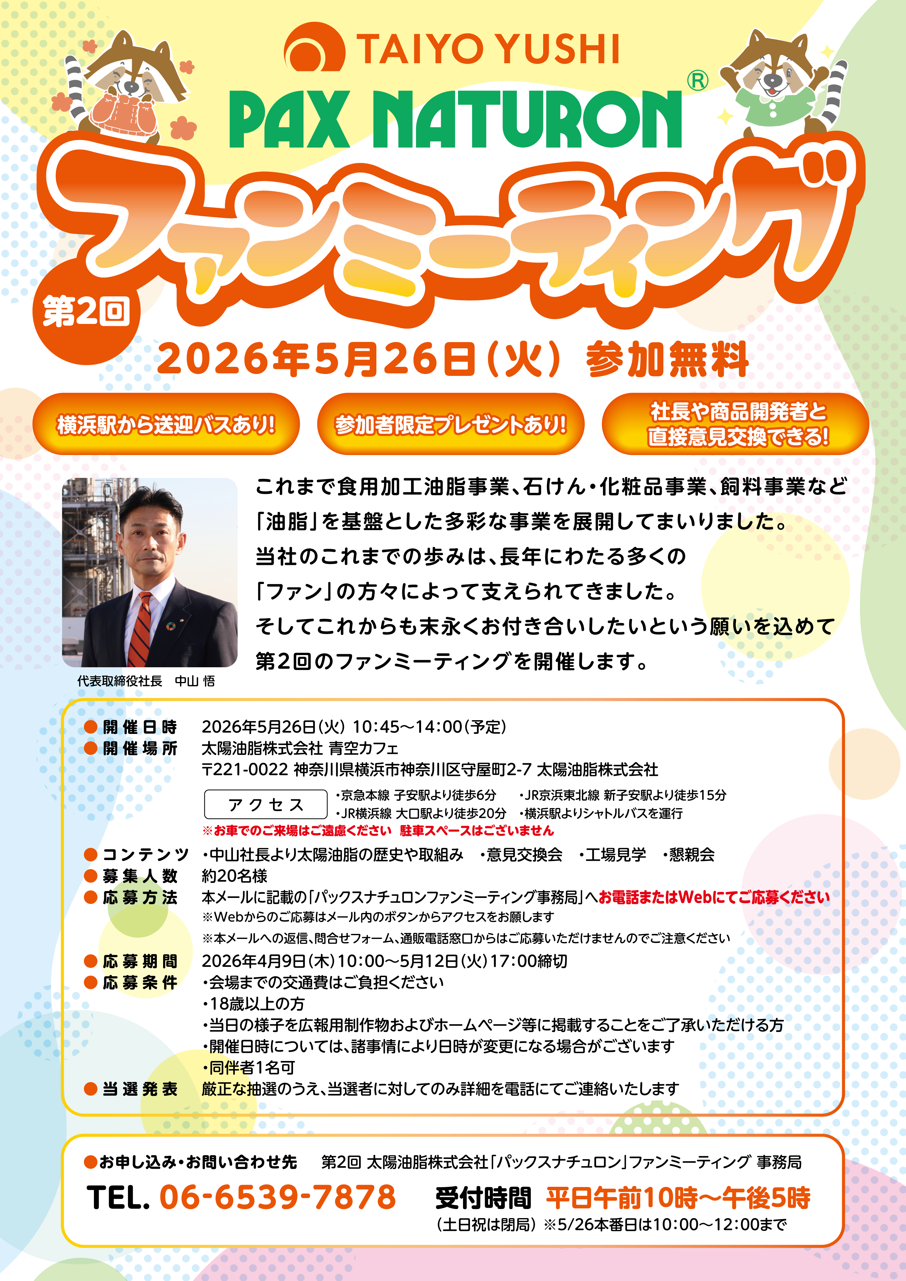 【参加者大募集!】太陽油脂ファンミーティングのお知らせ(応募締め切り:5/12 17:00まで)