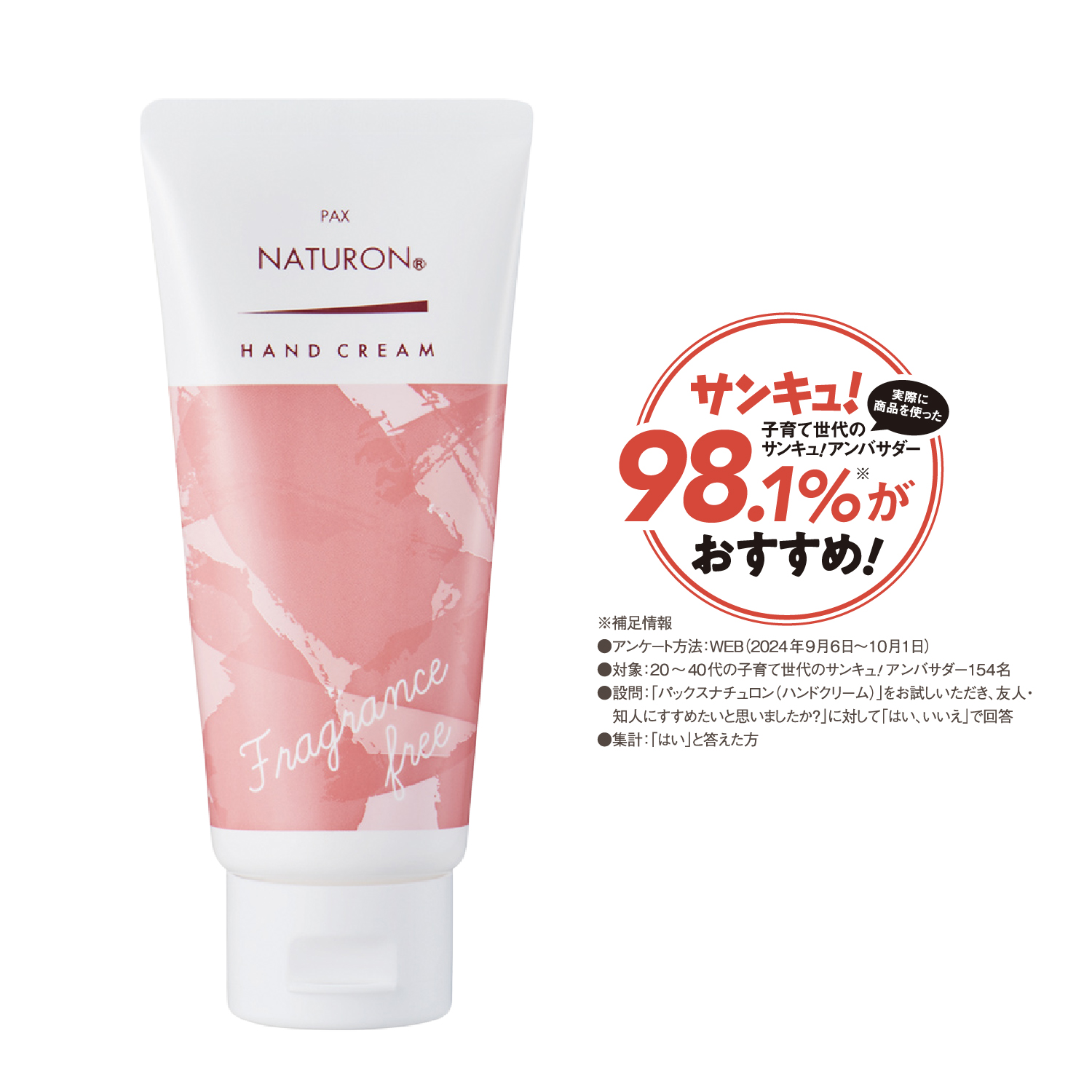 パックスナチュロンハンドクリームに香りをプラス。つけていることを感じさせないほど自然に手肌になじむハンドクリームです。