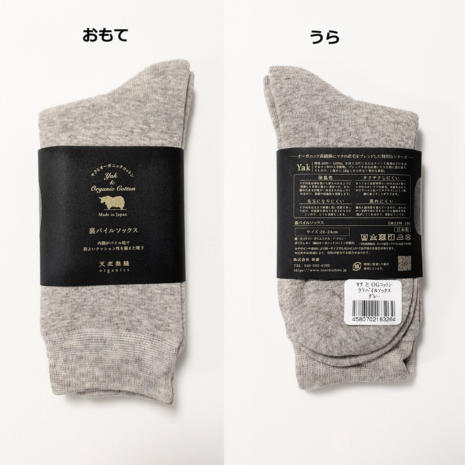 ヤクとオーガニックコットン 裏パイルソックス グレー Mサイズ(22~24cm)