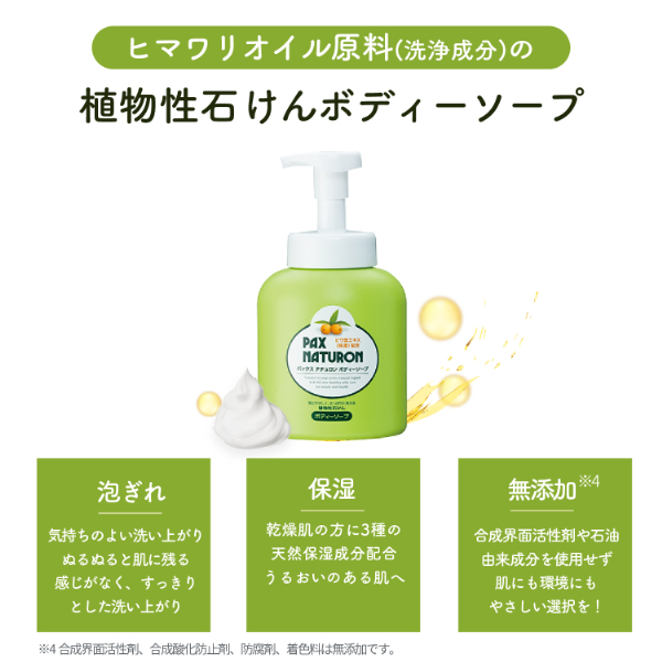 ヒマワリ油を原料にした植物性石けんのボディーソープ。