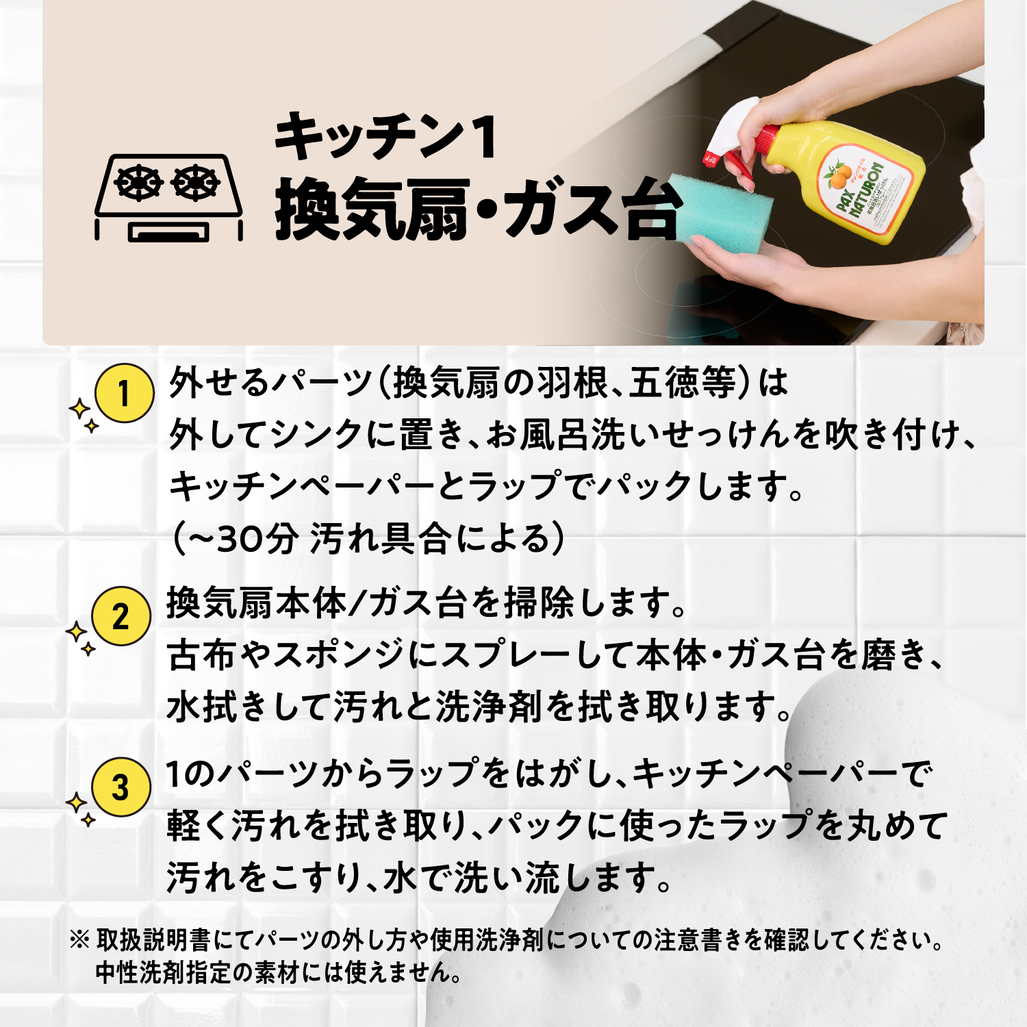 お風呂だけでなく、油汚れの気になる台所や換気扇掃除にもご使用いただけます。